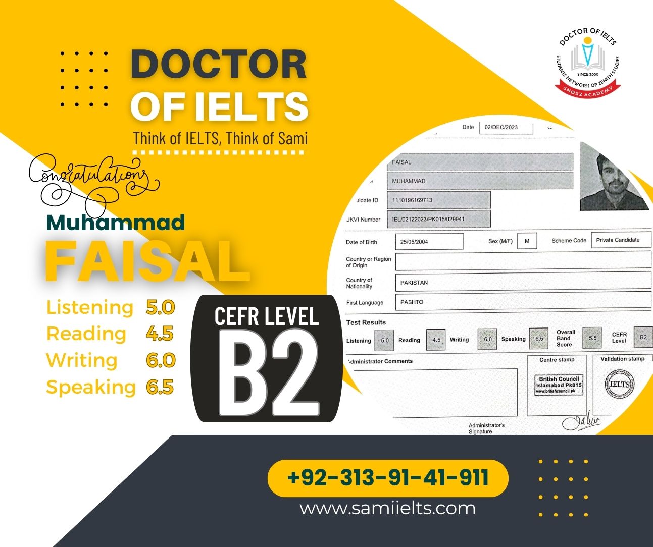 Congratulations to Muhammad Faisal on successfully achieving CEFR Level B2 in his English language proficiency assessment!