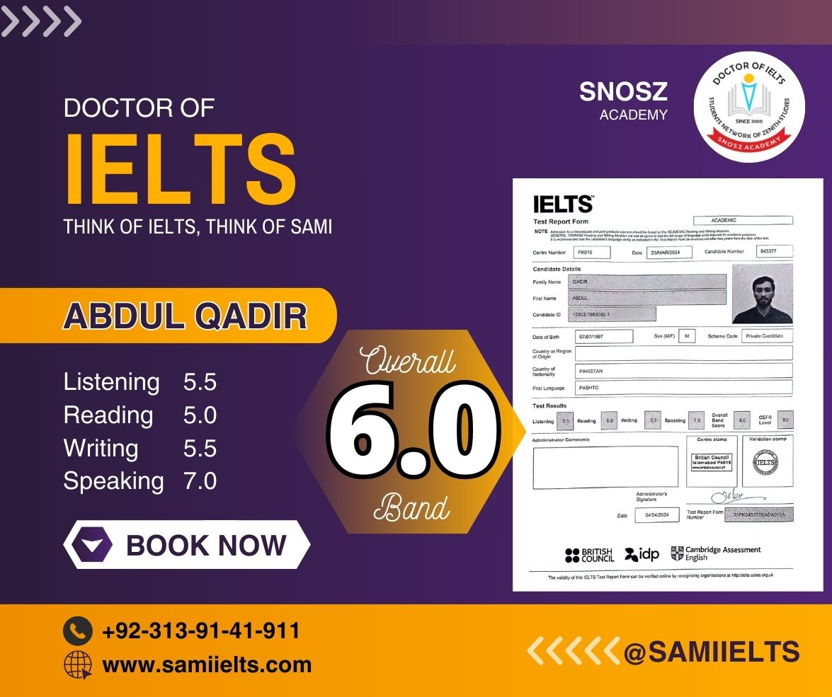 Congratulations to Abdul Qadir for securing a solid 6.0 Band in the IELTS exam!