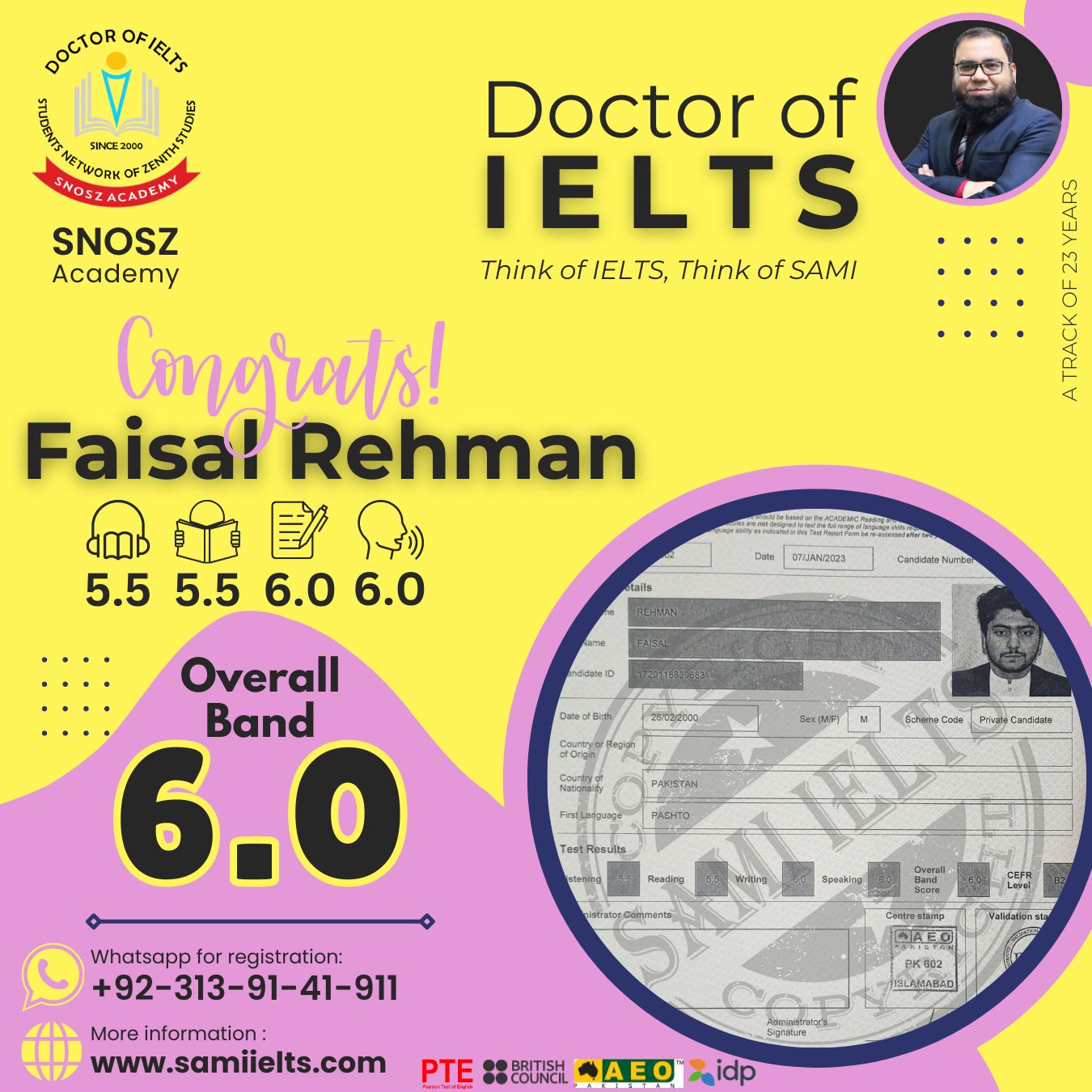 Congratulations to FAISAL REHMAN for achieving a 6.0 Band in the IELTS exam!