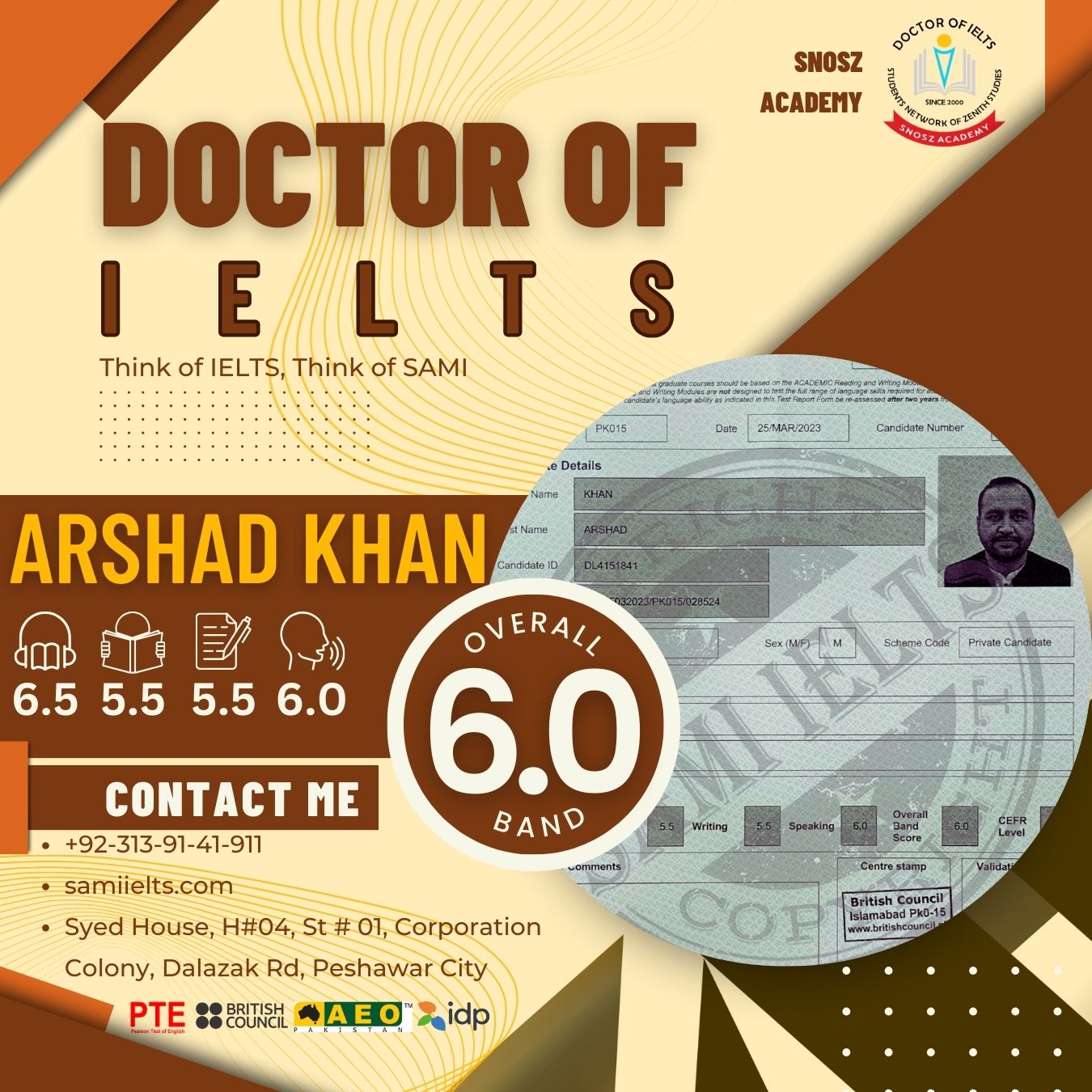 Congratulations to ARSHAD KHAN on achieving a 6.0 Band Score in the IELTS exam!