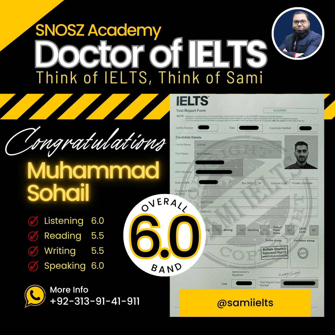 Congratulations to MUHAMMAD SOHAIL on securing a 6.0 Band Score in the IELTS exam!