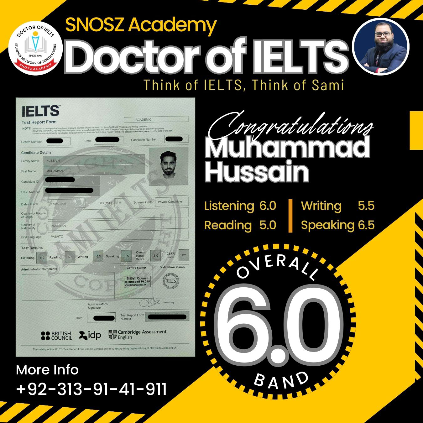 Big Congratulations to MUHAMMAD HUSSAIN for achieving a 6.0 Band Score in the IELTS exam!