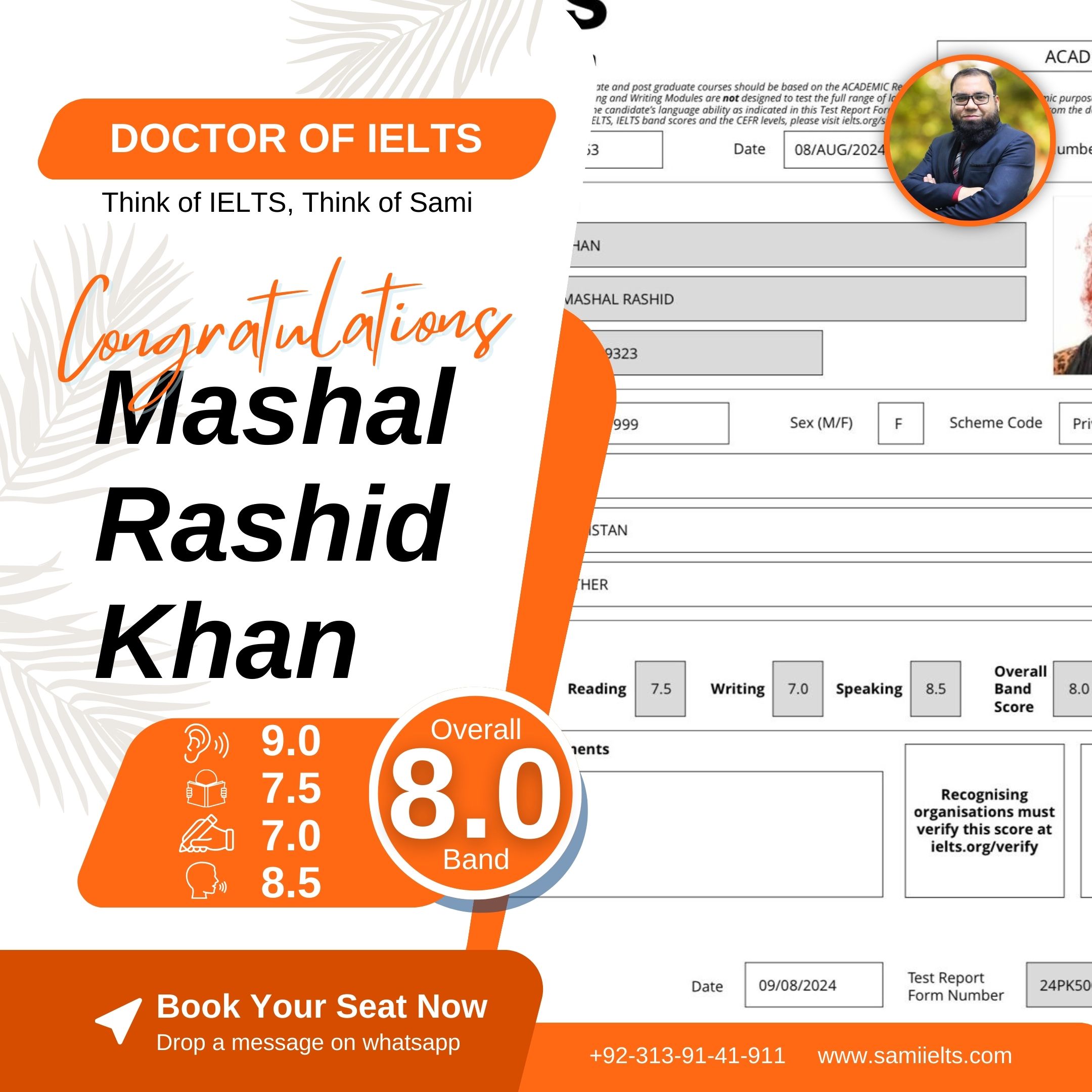 Congratulations to MASHAL RASHID KHAN for achieving an excellent 8.0 Band in the IELTS exam!